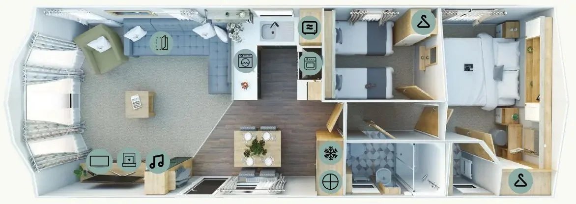 Brand new for 2024, our most generous Willerby Sierra 38' x 12' caravans enjoy a Kingsize en suite double bed room.